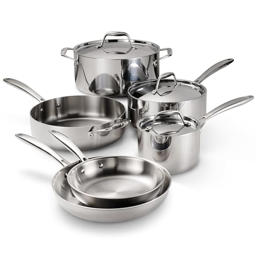 Tramontina Signature Tri-Ply Clad Stainless Steel 9-Piece Cookware Set with Lids, Pots and Pans Kitchen Set, Induction-Ready, Dishwasher-Safe, NSF-Certified