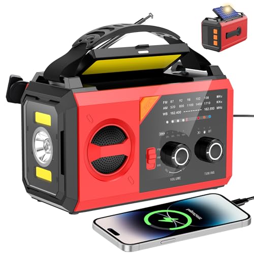 74000mWh Hand Crank Emergency Radio - 20000mAh Solar Portable Weather Radio AM FM NOAA with 3 Mode Flashlight & Reading Lamp, Headphone Jack, Cell Phone Charger, SOS for Emergency, Red