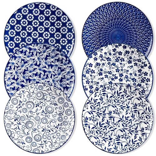 vancasso Ceramic Dinner Plates Set of 6, Large Vintage Plates 10.25 Inch Set of 6 for Kitchen, Porcelain Blue and White Plates for Kitchen, Microwave Oven Dishwasher Safe, Vintage Gift, Blue