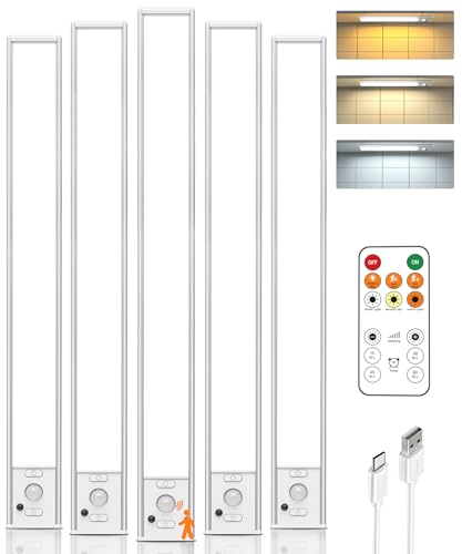 16in Under Cabinet Lighting Wireless, 160 LED Motion Sensor Light Indoor, Rechargeable Closet Lights with Remote Control, 3 Color Temps Under Counter Lights for Kitchen, Pantry, Stair, 5 Pack