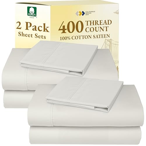 WINNER GOOD HOUSEKEEPING 2023 BEST BEDDING AWARD! These pack of 2 Twin Size Sheet Sets - 400-thread count twin bed sheets 100% cotton sateen are soft, cool & comfortable. As featured in a 2023 Wall Street Journal article, our sheets were referred to as "as soft as sheets 3x the price" - a great value indeed.IMPORTANT NOTE ON THIS COLOR: This ivory (pale tone) shade offers a luminous, neutral backdrop—free from creamy, yellow, or buttery hues—to cultivate a bright, sophisticated ambiance in your room.THIS PACK CONTAINS 2 SHEET SETS - The twin size sheets 2 pack include 2 top sheets, 2 bottom fitted sheets and 2 standard size pillowcases. The high-quality elastic won't loosen or bunch up, and head/foot side indicators make bed-making a breeze. The fitted sheets fit mattresses from 8 inch to 15 inch deep.DURABLE, EASY CARE & HEALTH-SMART: According to the National Sleep Foundation, 100% cotton sheets & pillowcases breathe better and feel gentler on skin than synthetic fabrics. Our OEKO-TEX STANDARD 100 certified twin bed sheets deliver that comfort with durable, easy-care performance. Machine-wash and dry on a normal cycle—this cotton sheet set won’t pill, fade, or shrink. Remove promptly from the dryer to avoid wrinkles.OUR COMMITMENT: We prioritize comfort, community, and sustainability. Since 2022, we've donated over 36,000 bedding items to US charities and removed plastic from our packaging. Sheets are crafted in our family‑owned factory in India with care and quality‑checked—thread count may vary by ±5% due to standard manufacturing limits. Enjoy affordable luxury and hassle‑free returns for a better night’s sleep.