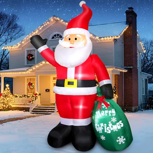 7FT Christmas Inflatable Santa Claus with Gift Bag, Blow up Giant Santa Claus Indoor Decoration, Built-in LED Lights for Lawn Patio Garden Home Display Hall Xmas Holiday Vacation Party Outdoor Decor