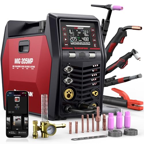ARCCAPTAIN MIG205MP MIG Welder 9 IN 1 iControl APP Control Plasma Cutter/Pulsed MIG/Flux Core/Spool Gun/DC HF/Lift TIG/Clean/Stick Aluminum Welding Machine 120/240V Dual Voltage Multiprocess Welder