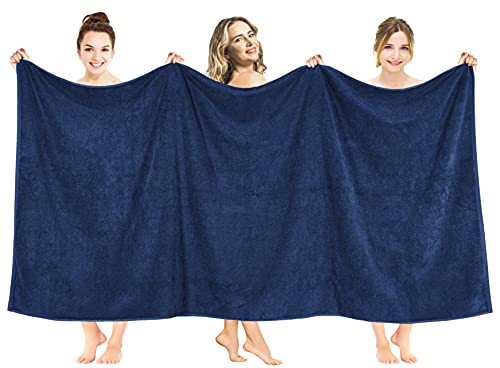 American Soft Linen Oversized Bath Sheet 40x80 Extra Large for Bathroom, 600 GSM 100% Cotton Turkish Jumbo Bathsheet Towels for Adults, Navy Blue Bath Sheet