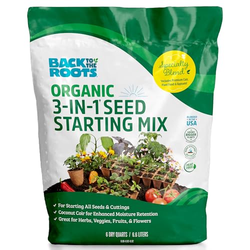 NUTRIENT-RICH, NATURAL, AND ORGANIC SOIL: Grow a bountiful garden in your home with the Back to the Roots All-Purpose Natural and Organic Peat-Free 3-in-1 Seed Starting Mix, packed with the nutrients needed for your plants, flowers, and vegetables to thriveMYCORRHIZAE, YUCCA EXTRACT, AND COCONUT COIR FOR STRONG ROOT DEVELOPMENT: This organic potting soil has mycorrhizae, coconut coir, and yucca extract which enhances the root's uptake of water and the nutrients required by your plants for growthFEATURES pH BALANCING DOLOMITIC LIMESTONE: The dolomitic limestone of this potting soil has a combination of calcium carbonate and magnesium carbonate which effectively neutralizes acidity and prevent nutrient deficiencyZERO-RISK GARDENING AND GREAT FOR THE PLANET: Made in the USA and 100% guaranteed to grow; If you have any problems, we will send you a new bag to get you growing; Mined peatlands contribute yearly CO2 emissions equivalent to what cars all over the world are releasing — that’s why we think it’s so important to leave peat alone and offer the 1st premium, 100% peat-free soil in the marketTHE PERFECT GIFT: The perfect holiday gift, it comes in a beautiful packaging so that it's ready to be given to foodie, garden-loving and eco-conscious friends and family; This kit is also part of our Grow One Give One campaign, simply share a picture on social media, tag us and use the campaign hashtag, and we'll donate a kit to a classroom of your choice