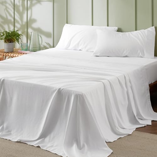 Bedsure King Size Sheets Set - 4 Pieces Soft King Sheets - Breathable & Cooling - Hotel Luxury - Easy Care Polyester Microfiber Bedding for Women, Men, White
