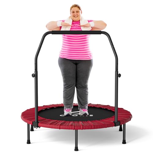 【Fairly Easy to Assemble】CLORIS fitness trampoline comes with 60% pre-assembled. Only 10 minutes to complete the assembly with our special tool【Premium Bungees】The high-quality bungees provide a smoother and quieter experience without disturbing others. 1.2 mm thickened bungees deliver a comfortable workout experience and caring protection for the knees and back【5-level Adjustable Handle】The fitness trampoline equipment with a 5-level height adjustable handlebar. Jump with confidence【Portable】 Unique foldable frame structure, the folded size is 15'' X 30''. Only 20% of the fully unfolded size. Easy to store the backboard anywhere, bed, sofa, car trunk, closet, etc【400 LBS Weight Capacity】32 high-strength bungees, 3 mm thickened steel, and wear-resistant PP mat make the 2025 upgraded fitness trampoline can bear up to 400 LBS【Magic Indoor Exercise】 10 minutes of bouncing exercise can achieve the effect of whole-body slimming. Make trampoline a habit, a part of your life【Quick Response】We promise to respond quickly within 12 hours and provide a 3months service to solve your problem more efficiently