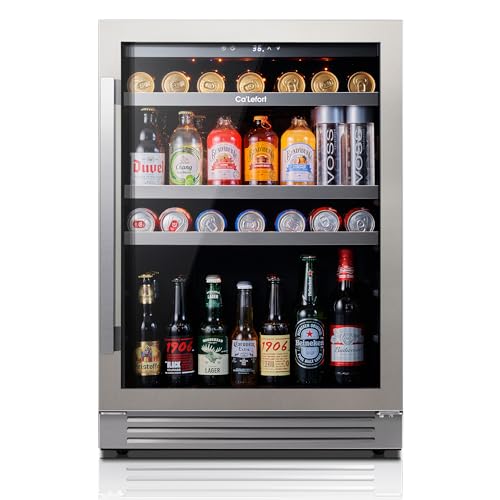 Ca'Lefort 24 Inch Beverage Refrigerator, 220 Can 34°F -54°F Beverage Fridges, Drink Fridge with Glass Door 3 LED Beverage Coolers Built in or Freestanding, Perfect for Home/Kitchen(5.65 cu.ft)