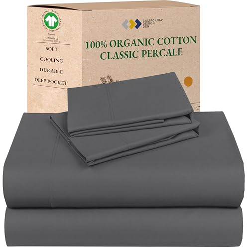 California Design Den Queen Size Sheets - Soft 100% 100% Organic Cotton Sheets with Deep Pockets, Crisp Percale, Breathable and Durable Bedding Set - Grey
