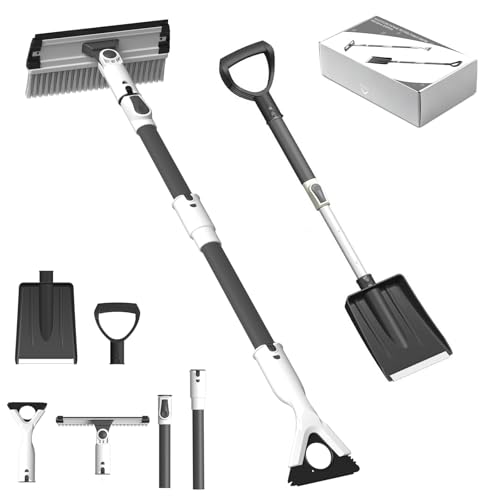 Car Snow Brush and Ice Scraper, 3-in-1 Extendable Snow Shovel with Wide Head Snow Shovel and Ice Scraper 180° Pivoting Snow Brush Head for Car Windshield, Durable Snow Remover with Foam Grip