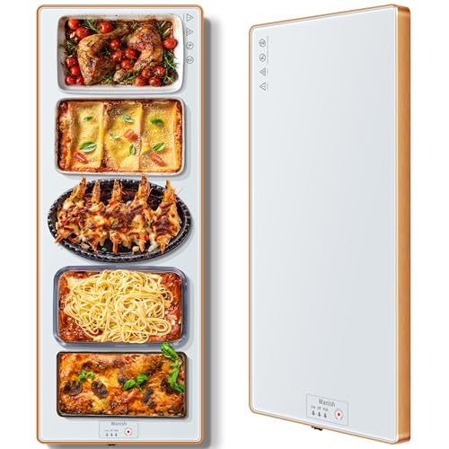 Electric Warming Tray (Extra Long 40"x12"),Food Warmers for Parties Buffet with Thermostat & Full Surface Heating, Tempered Glass Warming Mat for Food, Temperature Adjustable Food Warming Mat, White