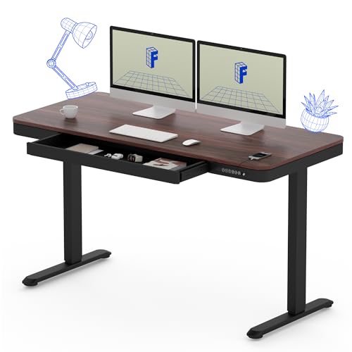 Spacious One-Piece Desktop with Ample Space: Measuring 55" x 28", this working station provides plenty of room with a weight capacity of 154 lbs, making it perfect for accommodating all your professional work and entertainment equipment.Embedded Multiple Functions: This standing desk comes with four programmable height presets, making it easy to save your preferred heights. a child lock button helps prevent accidental touch. Charge up to three devices with integrated USB ports without mess & hassle. (Note: USB ports may pause charging while adjusting desk height, Laptop charging is not supported)Convenient Storage Drawer: A convenient pull-out drawer embedded in the desktop provides seamless integrated storage space for your home office supplies. The modern design blends in perfectly with the rest of the structure while keeping your belongings out of sight and neatly put away!Electric Height Adjustment: With an industrial-grade steel frame and built-in electric motor lift mechanism, this desk allows you to switch from sitting to standing in seconds. Simply press a button to adjust the height smoothly from 28.7" to 48" (including the 2.6" thickness of the tabletop).Simple and Easy Assembly: Our innovative quick-install design lets you get up and running in less than 5 minutes! A factory-installed crossbeam greatly simplifies the setup process, so you can get back to what matters most.