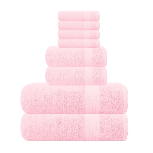 Each set contains 2 oversized bath towels 27x54, 2 hand towels 16x28 & 4 washcloths 13x13100% Pure cotton for softness, absorbency & durability - Luxurious hotel & spa quality towel setComplimented set for daily use, hotel & spa, quick drying & multipurpose usage100% Natural materials & free from harmful chemicals / materials - safe for you & your familyMachine washable & dryable, wash in cold water, tumble dry low - wash separately before first use