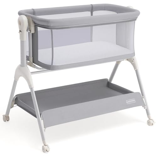 HARPPA Cuddly Baby Bassinet Bedside Sleeper, 3 in 1 Rocking Bassinet with Mattress and Soft Cover, Full Mesh Sides, 5 Height Adjustable with Wheels for Newborns, Grey