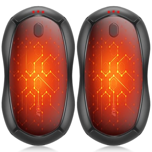 【2-in-1 Magnetic Design】This rechargeable hand warmers 2 pack is designed with magnetic attraction, it can be divided into two for independent heating, and portable hand warmer for easy storage. This pocket warmers has a unique shape and feels comfortable to use. Use it as a camping hand warmers and share it with your friends and family.【Three Seconds Quick Heat】There is an on button on the top of the electric hand warmers rechargeable, press and hold for three seconds and the reusable hand warmer will turn on the heating to 105.8℉-114.8℉-125.6℉. Adjust the suitable temperature according to different temperature needs.【Rechargeable & Three Levels of Temperature】Electric hand warmers, 5200mah rechargable hand warms with up to 12 hours battery life, USB hand warmer. With 3-speed indicator light, you can adjust three different temperatures, the use of time is 7-9.5-12 hours. Choose the right temperature for a comfortable using experience.【Battery Level Alert】Double tap the on button at the top of the rechargeable heater to check the power level. When the handwarmer is low on power during use, the indicator lights on both sides of the on button will blink to indicate this. Remind to charge in time for next use.【A Gift with Warmth】On a special holiday, Christmas, Easter, and birthdays, etc. Give it to your daughter, mom, beloved girl. This cute hand warmer can bring them warmth, like you are always with them!
