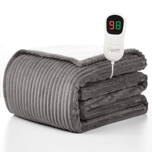【PREMIUM MATERIAL】: 220gsm flannel + 200gsm sherpa.The fabric is very soft,thicker than normal blankets,and warmer than normal blankets even without electricity.The fabric is durable and does not shed.The diameter of the heating wire is 2.2 mm,and the existence of the heating wire is hardly felt during use,which is more comfortable.【SAFETY】: Homemate Heated blankets have passed the American safety UL964 Test.Have ETL Certification.Lower Electro Magnetic Radiation.The heating wire is designed and produced by Japanese company,more advanced technology,stronger insulation and flame resistance.Moreover,the heated blanket use NTC overheating protection technology to ensure that it will not overheat and cause burning.【ENERGY SAVING】: Homemate heated blanket use the intelligent temperature adjustment technology.When the temperature rises,the heated blanket will automatically adjust the temperature according to the surrounding environment,which can always provide users with a comfortable feeling and is conducive to energy saving.Compared with air conditioner,using Homemate heated blanket is more energy efficient,and you can save more heating costs in winter.【EASY TO USE】: Homemate heated blanket have 10 heat levels,1/2/4/6/8 hours auto shut off.Temperature range is 86-122°F.Very convenient to use,even the elderly,the sick,and the disabled can use it easily.Power Cord is 9.5 feet,this long cord makes the use of the blanket more flexible,can be used on the bed,on the sofa,can be used in the study and office,very convenient.【LARGER HEATING AREA】: The heating wire used in the Homemate electric blanket is longer, so the heating area is larger and the heat distribution is more uniform.【BEST GIFT】: Homemate heated Blanket is the best gift for birthday or other holiday like Christmas,New Year's Day. And the use of electric blankets is good for relieving muscle soreness and joint pain, it is a great gift for the elderly, patients, and people recovering from surgery.