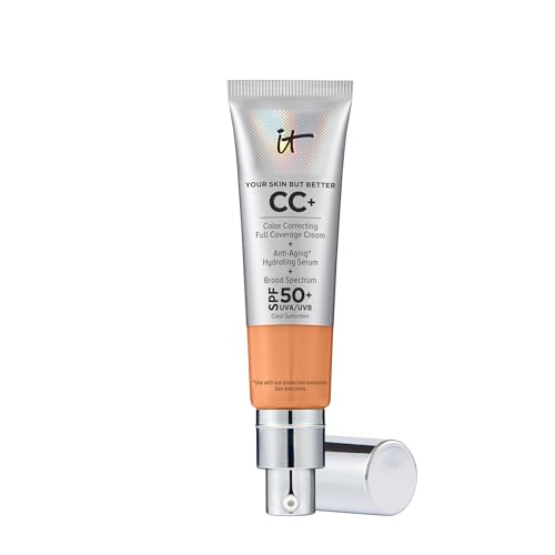 WHY YOU’LL LOVE IT – Your Skin But Better CC+ Cream with SPF 50+ combines full-coverage foundation, anti-aging serum, and mineral sunscreen. It’s the #1 prestige SPF foundation in the U.S.! This anti-aging foundation with built-in serum and full coverage SPF protects skin while providing a long-lasting finish for a radiant, youthful, and flawless complexion on all skin tonesANTI-AGING BENEFITS – This tinted cream gives natural, flawless coverage for all skin types, instantly camouglaging the look of top skin concerns like acne scars, wrinkles, redness, dark circles, large pores, dark spots, and uneven skin tone. CC Cream is perfect for covering any redness or discoloration as the color correcting pigments are built right into the formula! No more messy green or yellow concealers.INGREDIENTS – This hydrating foundation serum features hyaluronic acid, peptides, niacinamide, Vitamin E plus broad-spectrum SPF 50+ UVA/UVB protection to hydrate, plump, and even skin tone while reducing fine linesSPF 50+ – Deeper foundation shades (Tan Cool to Deep Cool) include broad-spectrum clear SPF for sun protection without the white cast, perfect for darker skin tones needing natural, lightweight foundation coverage without a white or gray cast. Clear SPF is a chemical sunscreen that looks invisible on skin, including deeper skin tones. Both physical and clear SPFs have been dermatologist-tested for safety, suitable for sensitive skin and allergy-tested.DISCOVER IT – Apply 1-2 pumps on clean skin. Build coverage as desired with Complexion Perfection #7 makeup brush for buffing and blending. Find your favorite multi-tasking foundation : CC+ Original (full coverage, natural finish), CC+ Nude Glow (medium coverage skin tint, glowy finish), CC+ Illumination (full coverage, radiant finish), CC+ Natural Matte (full coverage, pore-less matte finish)