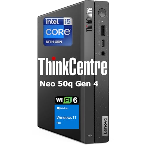 Lenovo ThinkCentre neo 50q Gen 4 Tiny Desktop Computer helps you to maximize your desktop space while allowing you to run a variety of applications. Measuring about 7 x 7 inches with a 1.4 inch depth, this incredibly compact computer system fits almost any location. Powered by a laptop-class 13th Gen Intel Core i5-13420H processor, 8C (4P + 4E) / 12T, P-core 2.1 / 4.6GHz, E-core 1.5 / 3.4GHz, 12MB.Driven by integrated Intel UHD Graphics, you can connect up to two displays through the HDMI and DisplayPort outputs.Memory: 16GB DDR4 RAM; Hard Drive: 256GB M.2 PCIe NVMe SSD. Optical Drive: No.Connectivity: Intel Wi-Fi 6 AX201, 802.11ax 2x2 + Bluetooth 5.2; Front Ports: 1x USB-C 3.2 Gen 2 (support data transfer and 5V@0.9A charging), 1x USB 3.2 Gen 2 (Always On and 5V@2.1A charging), 1x headphone / microphone combo jack (3.5mm); Rear Ports: 2x USB 2.0, 2x USB 3.2 Gen 2, 1x HDMI 2.1 TMDS, 1x DisplayPort 1.4, 1x Ethernet (RJ-45).Windows 11 Professional, English. USB Calliope Keyboard, English and USB Calliope Mouse, Black included. Adding a separately purchased VESA mount allows you to attach to walls, under desks, and even behind a monitor to create an all-in-one system, this business class desktop computer can fit almost anywhere. Bundled with Wendbo Cable.