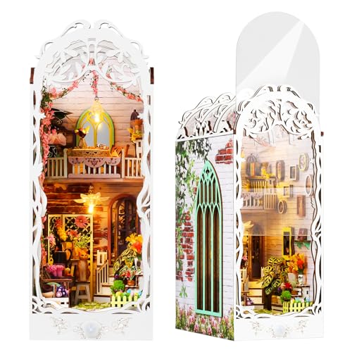 Lycidae Book Nook Kit, DIY Dollhouse Booknook, Mini Doll House, with LED Lights, Room Model Kit for 14+ Teens and Adults Building, Creativity Gift, Home, Bookshelf Decor(Gardenhouse)