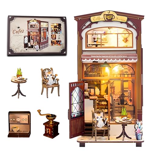 【Precision cut error-free assembly】This DIY book nook kit is made of high-quality wood, ensuring durability and stability, effectively preventing damage and breakage. Furniture and other wooden parts are precision cut to ensure correct assembly【Unique design and full of details】 Dollhouse and other wooden pieces are precisely cut so that they fit together correctly. LED light, ornament, Room Model are quite realistic and cleverly designed. Every corner of this place is full of details. When you're tired of reading, make a cup of hand-ground coffee and enjoy the sculptures and graffiti walls【Creative Gift】The structural design has been optimised so that the assembly time has been significantly reduced. The assembly experience is very smooth and easy. It makes a great gift for Valentine's Day, Mother's Day, Father's Day, Birthday【Clear Assembly Instructions】This DIY model kit contains full assembly instructions, Each task is clearly described and there are many color photos showing you how to assemble each part and where to place everything.It will take you only 5-6 hours to complete, at which point you will have a perfect DIY Book House model and a great sense of satisfaction🙋♀️ Tip: The kit includes LEDs, but you will need to prepare your own two AAA batteries as they are prohibited for air transport.