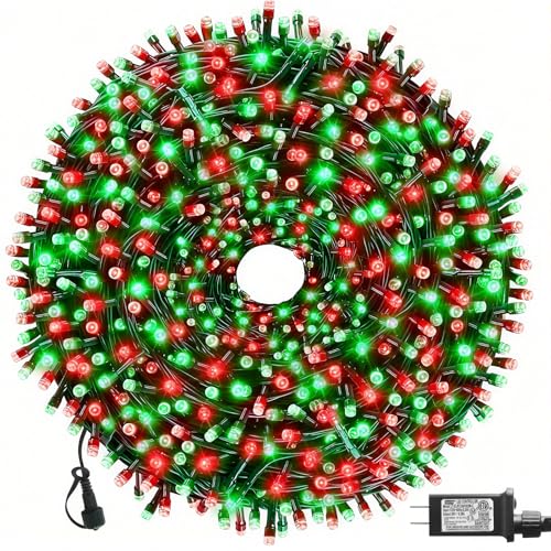 MZD8391 105FT 300 LEDs Red Green Christmas Lights Outdoor Indoor, Christmas Tree Lights Party Decorations, 8 Lighting Modes with Timer & Memory Function