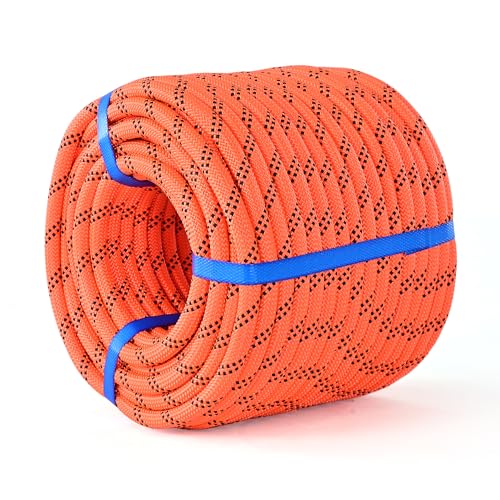 Double Braid Arborist Rope,1/2 in x 100 ft Arborist Rigging Polyester Rope,50 Strand Rope Swing for Tree Bull Rope for Outdoor, Tree Work, Swing, Sailing, Orange/Black