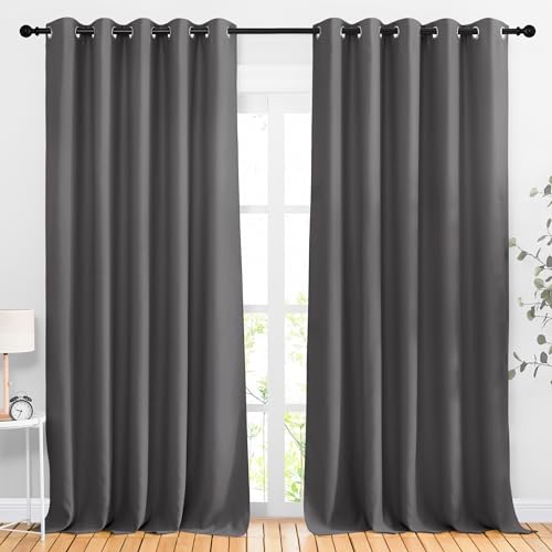 NICETOWN Bedroom Blackout 110 inch Curtains for Sliding Glass Door, Grommet Thermal Insulated Solid Window Treatments Sound Reducing for Living Room, W66 x L110, Grey, Set of 2