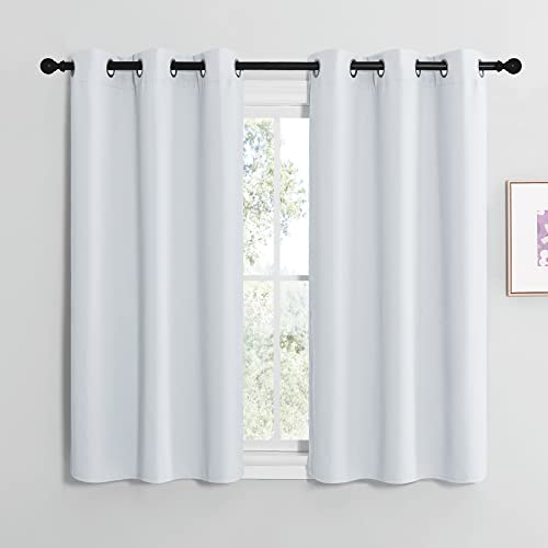 NICETOWN Blackout Curtain Panels for Bedroom, Greyish White, 2 Panels, W29 x L30-inch, Thermal Insulated Grommet Top Blackout Draperies and Drapes for Basement