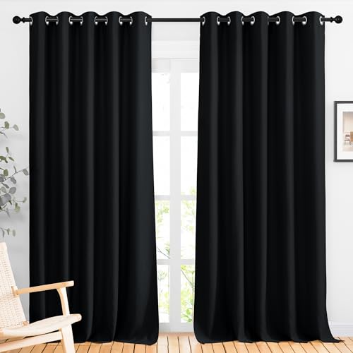 ELEGANT DESIGN: 2 panels per package. Each Blackout Curtain measures 66" wide x 92" long. The design of silver grommet (1.6-inch inner diameter) creates casual elegance for your house, which makes the curtains easy to install and slide.SERVE WELL: Curtains impede 85%-99% light and UV rays(Dark color curtains work well). Noise-reducing, better TV viewing thanks to the innovative triple weave technology. Thread trimmed and wrinkle-free, both sides are the same color.ENERGY SMART: Triple weave blackout fabric balances room temperature by insulating against summer heat and winter chill. Protect your furniture, floors, and artwork from the ravages of the sun, the drapes will pay for themselves off over time.WIDE COMPATIBILITY: Don't bother looking for valance to match, choosing different styles of blackout valance with the same color in the NICETOWN store. Such curtain sets provide a more permanent harmonious window dressing.EASY MAINTENANCE: Machine or hand washable. Mild detergent no bleaching. Low-temperature ironing. Measure your pole and window size before you choosing curtains.