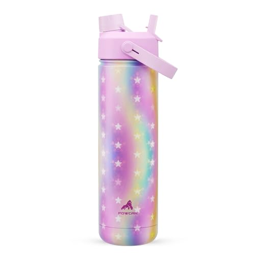 POWCAN 26 oz Insulated Water Bottle with 2-in-1 Straw and Spout Lid, Keep Cold 24H, Leak-Proof, Fits in Car Cup Holder, Stainless Steel Water Bottle for Sports, Travel, and School (Starlight Cascade)