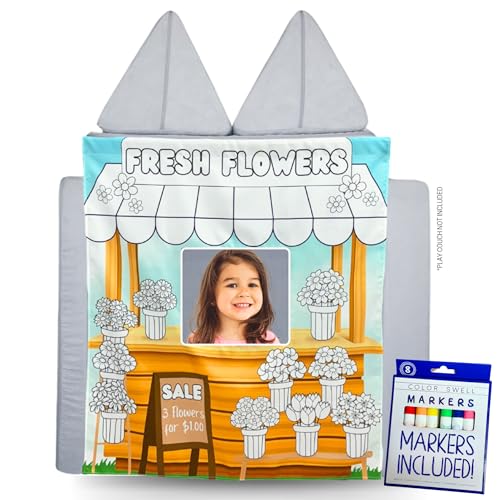 FLOWER SHOP COLORING PLAY PANEL - Unleash your child's creativity with our Flower Shop Coloring-In Washable Play Panel! This delightful panel features a charming flower shop design, perfect for imaginative play. Kids can color in the details, from blooming flowers to the storefront, over and over again. Once they’re done with their masterpiece, simply wash the panel to create a fresh canvas for endless fun!WASHABLE FABRIC - Our washable play panel is designed for repeated use, ensuring hours of colorful fun. Simply wash the fabric with soap and water and hang to dry. Once dry, the panel is ready for another round of creative play.GIVE YOUR KIDS THE GIFT THEY'LL REMEMBER FOREVER - Kids don't need expensive toys to get excited. The play panels are a great gift to give to any kid - all you need is a couch! They adore having a little spot that is just theirs. Children love crawling inside the indoor tent & have meetings with their friends there, the other young explorers.ADJUSTABLE VELCRO STRAP - Each panel comes with an adjustable velcro strap. The strap makes it easy to wrap around play couches of all sizes. Don't have a play couch? Let your kids use couch cushions to build their forts!LET THEIR IMAGINATIONS RUN WILD - Imaginative play can do a lot for kids’ development, improving their social and language skills, boosting their creativity and problem-solving abilities, keeping them active, and most importantly making them happy! Transform your play couch into a fun and creative space for your child!EASY SETUP - Our play panels are able to be set up and swapped out in seconds! All you need to do is wrap the velcro strap around the couch and you are ready to go! Your panel will attach in seconds. Want to change the scenery? Buy multiple panels to change things up for your kids!15 FUN DESIGNS! - Flower Shop, Underwater, Police Station, Coffee Shop, Ice Cream Store, Post Office, Food Truck, Hockey, Baseball, Carwash, Firehouse, Lemonade Stand, Vet Office, Barn and Santa's Workshop! Collect them all!DIMENSIONS - We made these panels to fit all the play couches out there! The play panels are made with a polyester blend material that measures 33.5 inches wide x 37 inches tall. The adjustable Velcro strap expands to 12 ft.FITS ALL COUCH SIZES - Designed to fit all your favorite play couch brands, including: Nugget Comfort, Member's Mark Kid's Explorer Sofa, Okoelli Comfort Couch, Foamnasium, Figgy, Nest, Nook, Cozy Fort & more!