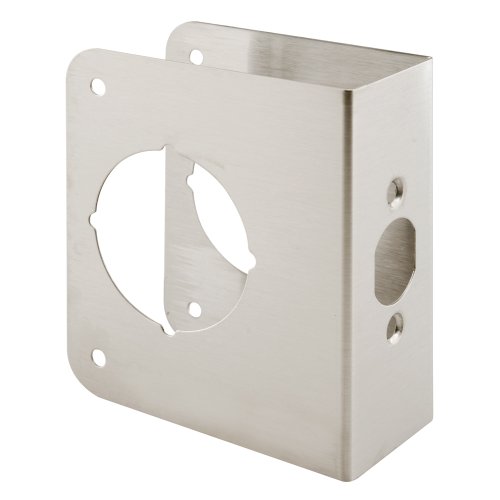 ADDED SECURITY – Prevent forced entry by reinforcing the weak spot of your door with the non-recessed door lock reinforcer; use to reinforce and repair both metal, fiberglass and wood doorsBUILT TO LAST – Made of solid stainless steel, the door lock reinforcement plate comes finished in stainless steel to fit over a single bore hole on your doorEASY INSTALLATION – All the necessary mounting hardware is included with the lock reinforcement plate for a quick and easy installation; the door reinforcer plate is pre-punched for mounting. Remove the protective film after installationDIMENSIONS – The door lock reinforcement plate is designed for 1-3/4 inch thick doors only that have a 2-1/8 inch bore hole through the door with a 2-3/8 inch backset from the edge of the door to the center of the bore holesNOTE – Make sure to dry fit the 3-7/8 inch wide by 4-1/2 inch tall with a 0.03 inch thickness door lock reinforcer before permanently installing and refer to the line art drawing and compare with your needs before purchasing