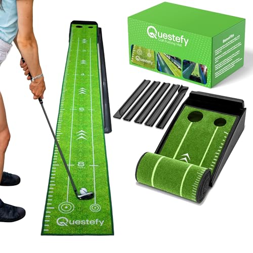 Putting Green Indoor | Wrinkle-Free Golf Mat with Auto Ball Return | Non-Slip Surface & Alignment Markings for Accurate Putting Practice at Home, Office & Outdoors | Improve Stroke Control & Precision