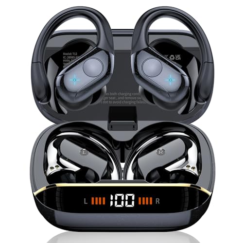 Qecnato Wireless Earbuds Bluetooth 5.4 Headphones 75H Stereo Deep Bass Sports Over Ear Buds with Earhooks, LED Display Bluetooth Earbuds with 4 ENC Mic, IP7 Waterproof Earphone for Running, Black