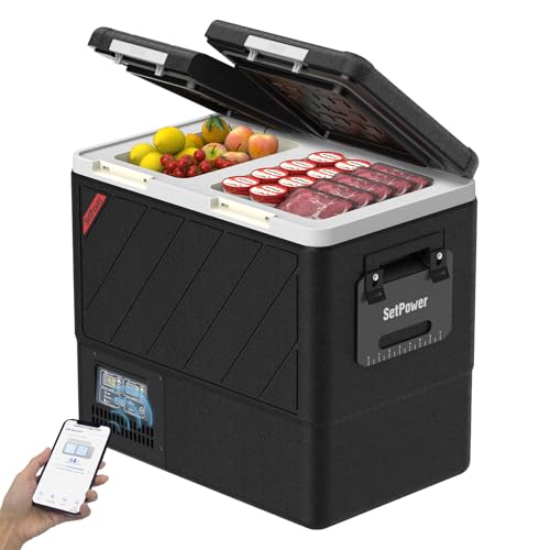 Setpower DT55 Portable Refrigerator with APP Control, 59QT(55L) Dual Zone Fridge Freezer, Electric Coolers for Vehicles AC/DC, Car Refrigerator 12V Portable Fridge