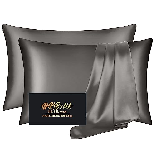 Silk Pillowcase 2 Pack, Natural Mulberry Silk Pillow Case, Anti Acne Silk Pillowcase for Hair and Skin, King Size Silk Satin Pillowcase Set of 2 with Hidden Zipper, Gifts for Women Men, Dark Gray