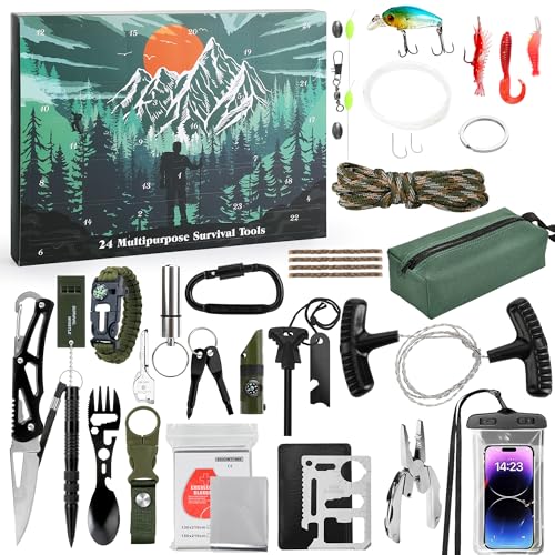 Survival Kit Advent Calendar for Men 2025-24 Days Survival Tools Advent Calendar for Adult Teen Boy, Christmas Countdown Survival Gear Gift for Outdoor Camping, Fishing, Hunting, Hiking Adventures