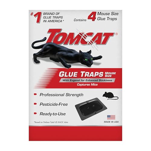 Tomcat Glue Traps effectively capture mice and other household pests like cockroaches, spiders, or scorpions without the use of baitOur sticky traps utilize a professional-strength glue formulation that is pre-scented and has immediate grip and stretchable holdPlace these pest control traps along the walls of rooms or cupboards where rodent activity is suspected, such as kitchens, basements, or garagesThese rodent traps are both and non-toxic and come ready to use right out of the boxEach package of Tomcat Glue Traps contains four disposable mouse-sized traps