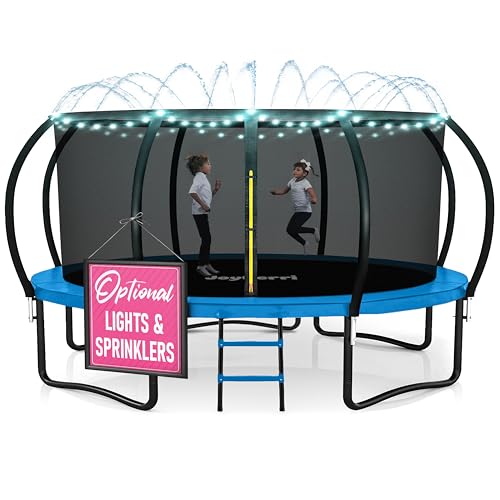 Trampoline for Kids and Adults - 8Ft 10Ft 12Ft 14FT 15ft 16ft Trampoline with Net - with Bonus Sprinkler and LED Lights/ASTM Certified/Extra Sturdy Recreational Outdoor Trampolines