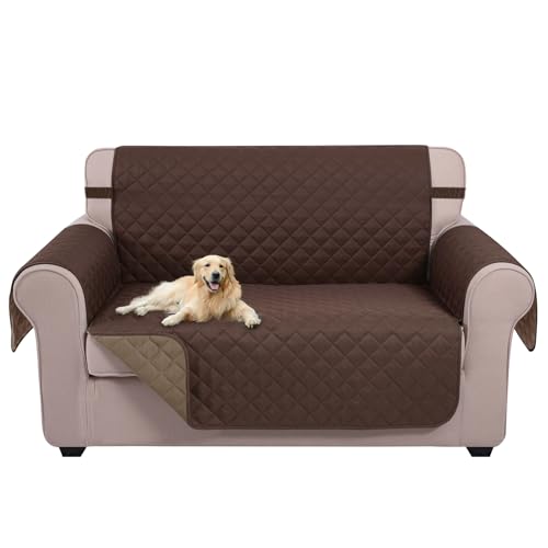U-NICE HOME Loveseat Sofa Cover Reversible Couch Cover for Dogs with Elastic Straps Water Resistant Furniture Protector for Pets Couch Cover for 2 Cushion Couch (Loveseat, Chocolate/Taupe)