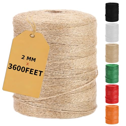 【High-Quality Classic Twine】 Our twine is made from high-quality natural fibers. It's strong, doesn't shrink much, is elastic, and can withstand wearand, which originates in Bengal. Eco-friendly, biodegradable, and easy to use around the house.【Pure Natural】Our twine is made of Natural Jute, Premium Material, good touch feeling, easy to use. No harmful substances, no extreme stinky smell. Eco-friendly, biodegradable.【Great for Arts & Crafts】Use it for christmas, birthday, mother day, valentines day gifts , wedding gifts, baby shower and more. For crafts: gift wrapping, gift card tag string, photos string, plant hanger, hanging signs, crocheting, knitting, macrame, basket making, and many other DIY projects.【Multi-Purpose】CONVENIENCE-This natural jute twine are widely used in packaging, strapping, gardening, greenhouses, pastures, bonsai because of its abrasion resistance, corrosion resistance, rain resistance and easy to use.【We Care About All Customers】As a professional ropes manufacturer, we have professional research, development, design, manufacturing, testing, sales links, after-sales guarantee, and one-stop service for many wrapping supplies. This comprehensive approach allows us to deliver ropes that not only meets but exceeds your expectations, where every wrap tells a story of elegance and style.