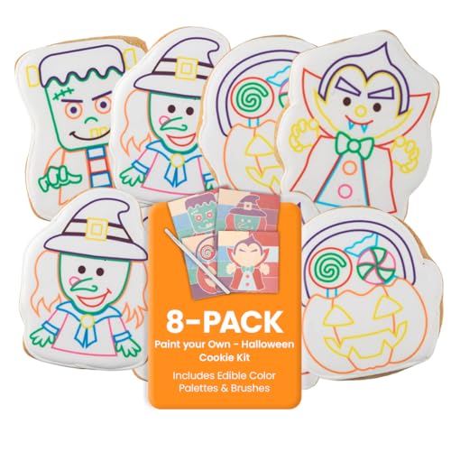 Gift-Ready Halloween Cookie Decorating Kit | Whether you're looking for kids Halloween gifts, Halloween gifts for girls, or a creative Halloween treat, this WANDERCRUMB cookie decorating kit is a fun and festive choice. Includes 8 individually wrapped cookies, 8 edible paint palettes, and 8 brushes in a beautifully designed gift box—perfect for gifting, parties, or cozy family fun at home.Bakery-Quality Sugar Cookies to Decorate | Each 90g cookie is hand-baked with a vanilla-butter flavor and comes with spooky designs ready to paint. These cookies to decorate are made in a nut-free facility, making them a great alternative to nut free Halloween candy or traditional Halloween snacks. Contains wheat, milk, eggs, and soy—crafted for creative snacking.Unwrap, Paint & Enjoy—No Baking or Prep Required | No need for messy ingredients or mixing! Each sugar cookie decorating kit comes ready to paint and eat. Simply dip the included brush in water, activate the edible paint palette, and decorate. A mess-free and delicious cookie decorating kit for kids that doubles as Halloween party fun or a rainy day activity.Arrives Beautiful & Intact | Every cookie, palette, and brush is packed securely to arrive in perfect condition. Whether you're sending Halloween gifts for kids, building Halloween candy gift boxes, or handing out Halloween party favors, this Halloween cookie decorating kit is a delightful surprise that arrives fresh, beautiful, and fun.Made by the Cookie Decorating Experts | Safe & Trusted FacBaked in an GFSI SQF Level 11, HACCP, and RSPO-certified bakery that produces over 50 million cookies annually. Whether you're shopping cookie kits to decorate, Halloween snacks for kids, or Halloween gifts that go beyond candy, WANDERCRUMB delivers quality, safety, and seasonal joy in every bite.