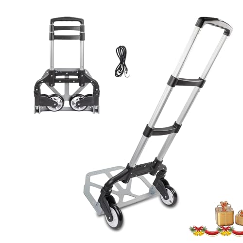 【Convenient & Easy Usage】The telescopic handle extends from 24 to 39 inches with the push of a button and lift on the handle. Equipped with a bungee cord and lightweight design. Easily bring in boxes, luggage, groceries,etc.【Compact】Unfolded dimensions: 39.37" x 15.75" x 15.35", this hand truck can fold down to an incredibly compact 2" thick footprint. Ideal for storage in small spaces or transportation. Easily fits in your car trunk or closet, ready for when you need it【Sturdy Structure】Crafted from durable rust-proof aluminum alloy and quality wheels, the WISLAS hand truck is built to last. Sturdy enough to hold up to 200 pounds of cargo, it ensures smooth and quiet movement. Reliable for heavy loads and frequent use【Fashionable Design】Our wheeled cart features a trendy design. Perfect for shopping, traveling, moving boxes, or storage containers. Use it as a car seat carrier or luggage cart. Its stylish look makes it a great addition to your daily activities【Ideal for】Ideal for travelers, trade show exhibitors, couriers, and anyone who frequently moves boxes and gear. Whether it's for work or leisure, this hand truck is a practical solution. Easily transport your items from place to place with ease