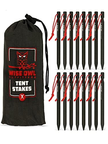 Complete 16 Pack of Durable Tent Steaks – Includes 16 rust-resistant 7075 aluminum tent steaks for ground anchoring, built to secure tarps, tents, and canopies with confidence.Heavy Duty Tent Stakes for High Wind – These rugged tie down stakes are 7.25 inch each, designed for maximum grip in windy conditions and tough terrain, making them ideal for storms, gravel, or packed soil.Multipurpose Pegs & Spikes for Outdoors – A smart addition to canopy tent accessories, these heavy duty anchors secure bounce houses, tarps, inflatables, and yard decorations in one versatile set.Ultralight Tent Stakes for Backpacking – Weighing less than an ounce each, this compact gear is perfect for ultralight packers, hikers, and travelers who want reliable performance without bulk.Bright Paracord Loops for Easy Removal – No more hunting for buried stakes. The red paracord tops make these ground spikes easy to see and quick to pull out from any terrain.Deep Stake Design with 3-Sided Grip – The Y-beam profile offers solid penetration into dirt, clay or sand, helping prevent spinning or loosening in high wind and wet conditions.Reliable Camping Tent Accessories – Whether you're setting up a hammock, pop-up shelter gazebo, beach tent or yard display, these metal tent stakes handle a variety of outdoor needs with ease.Tarp Stakes for Ground & Loose Soil – From the beach to the backyard, these sand stakes provide a firm hold in soft sand or shifting surfaces like dunes, mud, or mulch.Includes Compact Tent Stake Bag – Store and carry your metal ground stakes neatly with the included pouch, great for keeping your camping gear organized between trips.Thoughtful Gift for Outdoor Lovers – A practical choice for campers, scouts, or hikers, this durable stake set makes a handy gift for anyone building their adventure kit.