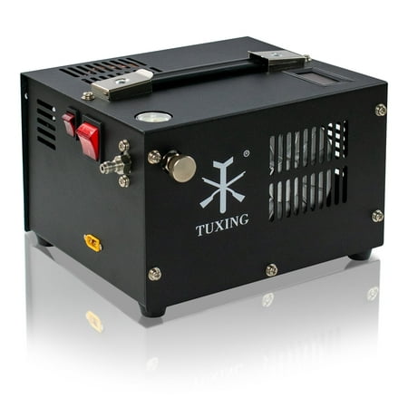 The TUXING TXES061 model of 4500Psi PCP Air Compressor is the ultimate portable solution for filling PCP air rifles, paintball guns, and diving tanks. Featuring a built-in transformer, this compressor is easy to use and perfect for outdoor adventures. The upgraded one-button start ensures effortless operation and extends the machine's lifespan. Whether you're a paintball enthusiast, a diving adventurer, or a PCP rifle user, this versatile compressor delivers reliable performance wherever you go.