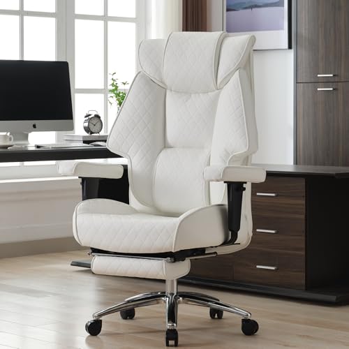 EXCEBET Big and Tall Office Chair with Footrest, PU Leather High Back Executive Office Chair 400lbs, Ergonomic Computer Chairs Lumbar Support for Heavy People (White)
